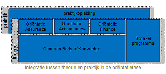 De hbo- en wo-opleidingen die gericht zijn op de accountantsstudie bevatten alle theoretische eindtermen. Instroom uit een andere vooropleiding leidt tot een schakelprogramma met deficiënties in de theoretische eindtermen voor de oriëntatie en mogelijk ook voor de op de common body of knowledge gerichte eindtermen.