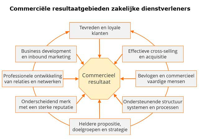 Ik introduceerde acht pijlers onder het commercieel resultaat van zakelijke dienstverleners. Hoe beter deze pijlers zijn ingevuld en hoe beter deze op elkaar zijn afgestemd, hoe beter de resultaten.
