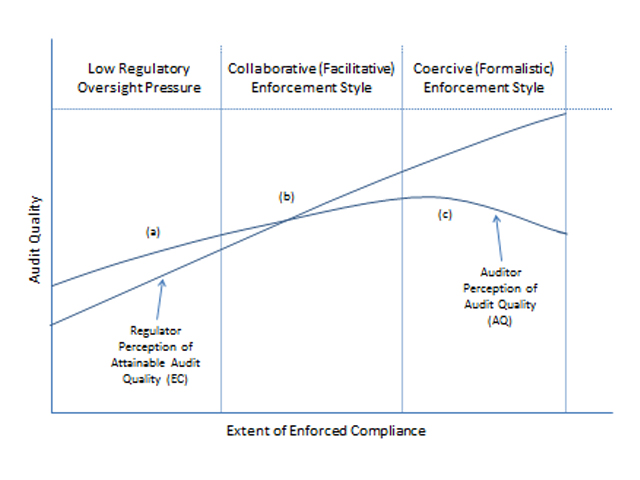 Het is zaak dat zowel toezichthouders als kantoren hun best doen om een ideaal evenwicht te vinden tussen streng handhaven door toezichthouders en de rol van de kantoren zelf . De verwachting is namelijk dat wanneer de toezichthouder te ver gaat in de handhaving, de auditkwaliteit achteruit gaat.