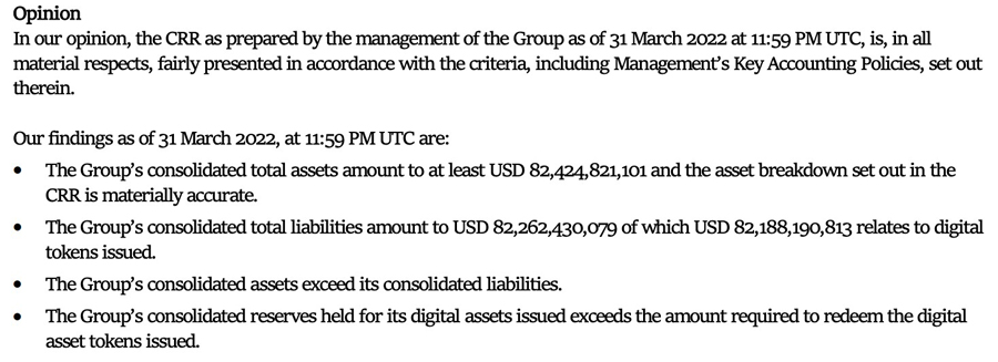 De accountant doet in zijn rapportage niet veel meer dan herhalen wat Tether in het CCR heeft gesteld, namelijk: