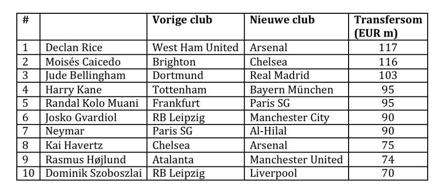 Figuur 1 – Top 10 transfers 2023/2024