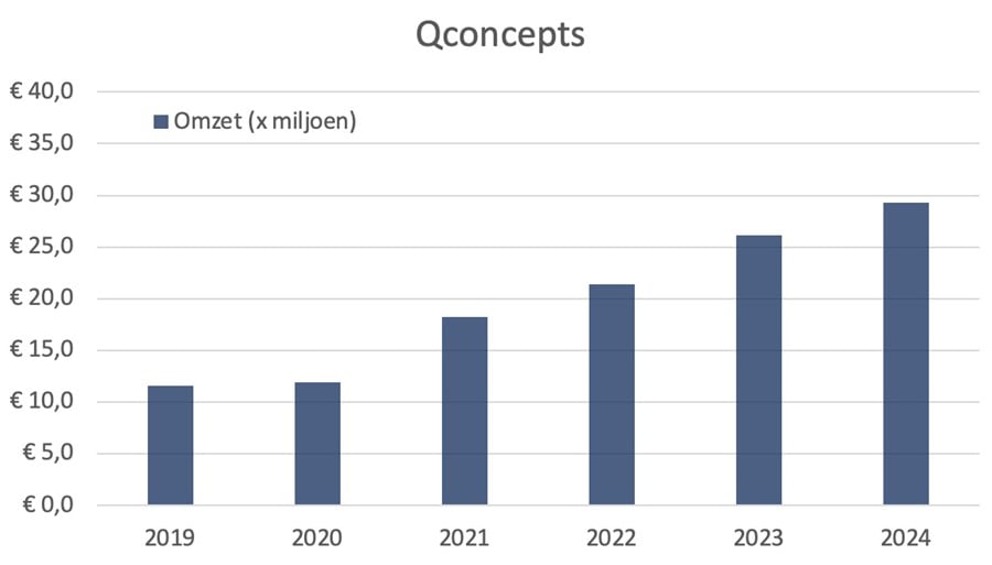 Omzet Qconcepts 2019-2024 (boekjaren eindigend op 30 september).