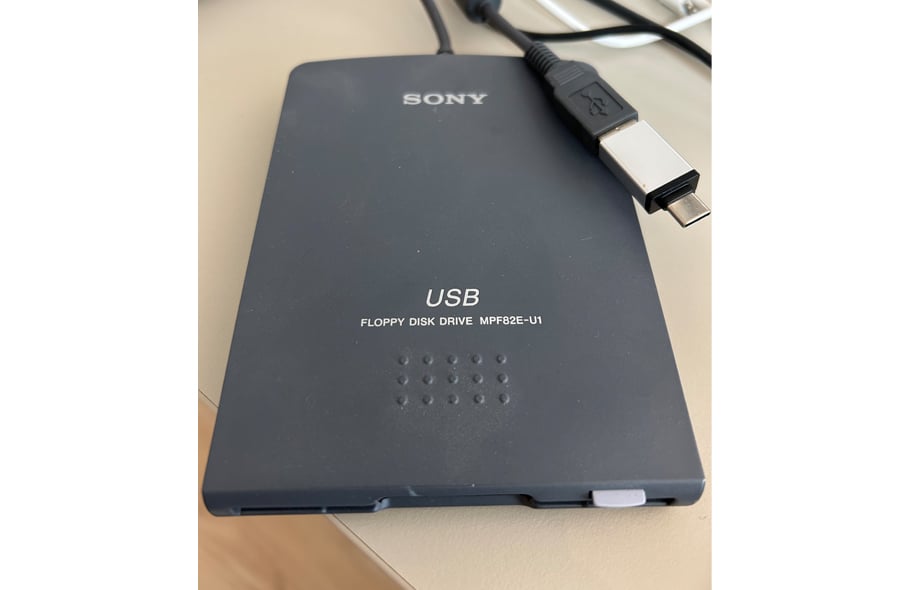 Via Marktplaats en e-bay is vaak nog wel een USB-diskdrive te vinden. Meestal met USB A aansluiting, zelden met USB C. Als je pech hebt is je werk-laptop zo ingericht dat je daarop geen externe drives of USB-sticks mag aansluiten, dus dan zal je moeten uitwijken naar een ander systeem. En als dat een moderne Apple is, zal je geen USB A meer aantreffen. Gelukkig bestaan er USB A naar USB C connectors. Zowel MS Windows als MacOS kunnen MS-DOS diskettes lezen en schrijven, dus dat is een meevaller.
