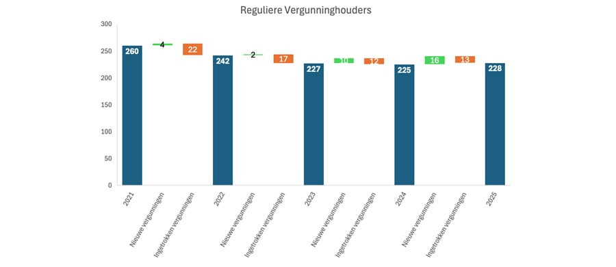 Ontwikkeling aantal reguliere vergunninghouders 2021-2025