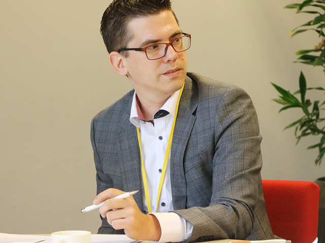 Rob Lelieveld, voorzitter accountantsbestuur en bestuurslid van EY Nederland, ontving in Den Haag vijf young professionals, waaronder Gorter (Q Accountants & Belastingadviseurs).