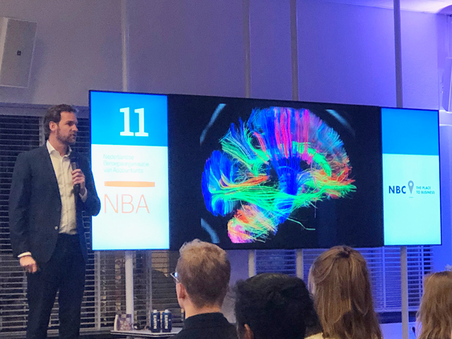 NBA Young Profs-bestuurslid Bas Herrijgers gaf de deelnemers aan de bijeenkomst een eerste inkijkje in lopend vervolgonderzoek naar de werkdruk bij jonge accountants. Na het eerste, spraakmakende onderzoek dat daarover in het voorjaar van 2018 is gepresenteerd, wordt begin 2020 opnieuw de stand opgemaakt.