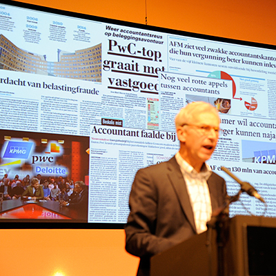 Tegen die achtergrond resumeerde de voorzitter nog even de zorgelijke kwaliteitstoetsingen door onder meer de AFM maar ook bij kleinere kantoren en de politieke opdracht om in september te komen met concrete maatregelen tot verbetering van de kwaliteit en onafhankelijkheid. "Het geeft ons ook de mogelijkheid om de vernieuwing te versnellen. We moeten stappen durven zetten, we komen er niet met plakken van pleistertjes."