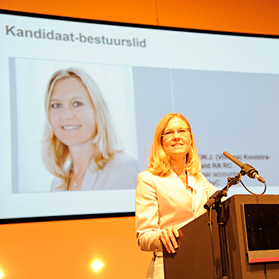 Een belangrijk agendapunt was de verkiezing van twee nieuwe bestuursleden. Viviana Kooistra-Voorwald (1972), partner bij PwC, zei onder meer een bijdrage te willen leveren aan de door commissarissen en bestuurders gevraagde 'bredere blik' van de accountant. "We moeten kritisch luisteren naar het maatschappelijk verkeer en in staat zijn door die bril te kijken."