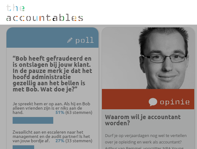 Naast polls, opinies en artikelen van studenten en een feuilleton over de accountancywereld van binnenuit, krijgt het platform de tijd om zich te ontwikkelen op de manier die het beste past bij de huidige generatie accountancystudenten.