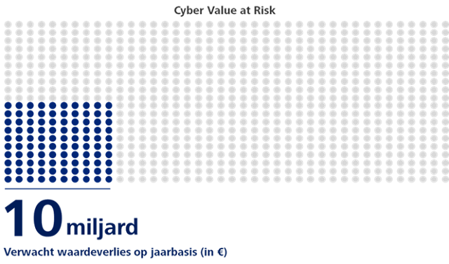 Deloitte heeft voor het eerst de cyberrisico's in Nederland gedetailleerd en gekwantificeerd in beeld gebracht door middel van data analyse. Deloitte schat het totale waardeverlies door cyberrisico's voor de grootste Nederlandse bedrijven en overheid op jaarbasis op 10 miljard euro.