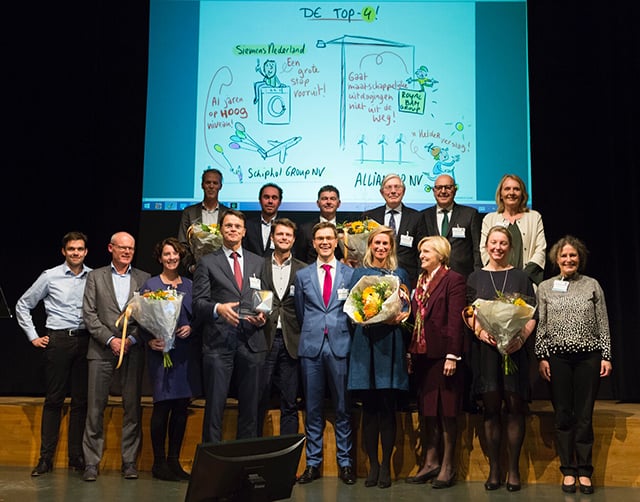 Bouworganisatie Royal BAM Group versloeg voor de hoofdprijs de andere genomineerden Alliander, Siemens en Schiphol Group. De jury waardeerde dat BAM maatschappelijke thema’s nadrukkelijk op de agenda en in het verslag vermeldt. De bouworganisatie betrekt haar stakeholders ook bij de discussie wat voor bedrijf het wil zijn in 2050 en wat voor doelstellingen voor 2020 daar dan bij horen. Ook geeft BAM aan waar het bedrijf zich nog kan verbeteren. “Het resultaat is een helder en goed verslag van een bedrijf dat zich nadrukkelijk durft te profileren op duurzame thema’s”.