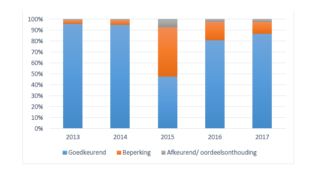 Strekking van de controleverklaring voor het aspect rechtmatigheid, voor de jaren 2013 tot en met 2017
