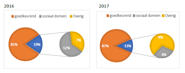 Het aantal gemeenten met een goedkeurend oordeel voor rechtmatigheid is verder toegenomen. Over verslagjaar 2017 kreeg 87 procent van de 388 gemeenten een goedkeurende rechtmatigheidsverklaring, een jaar eerder was dat nog 81 procent (van de 390 gemeenten).