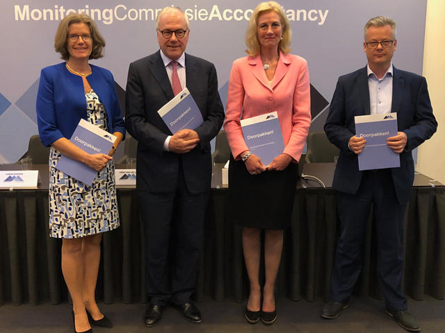 De Monitoring Commissie Accountancy vindt meer wet- en regelgeving geen oplossing voor de geconstateerde problemen, al leert de geschiedenis wel dat "externe druk" op de sector helpt om tot echte veranderingen te komen. De commissie baseert haar conclusies op gesprekken met belanghebbenden binnen en buiten de accountancysector, meerdere specifieke enquêtes en het bestuderen van transparantieverslagen, onderzoeken en rapporten.