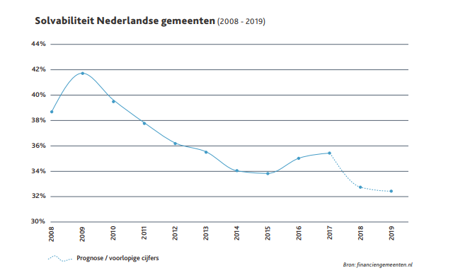 Nederlandse gemeenten hebben steeds meer moeite om rond te komen. De gemiddelde solvabiliteit, het financiële kengetal voor de mate waarin gemeenten in staat zijn om aan hun financiële verplichtingen te voldoen, ging als gevolg van de recessie van 42 procent in 2009 naar 35 procent in 2017. Hoewel er sinds 2015 sprake is van een lichte opleving vanwege economisch herstel, is de verwachting dat de solvabiliteit van gemeenten vanaf 2018 verder afneemt.