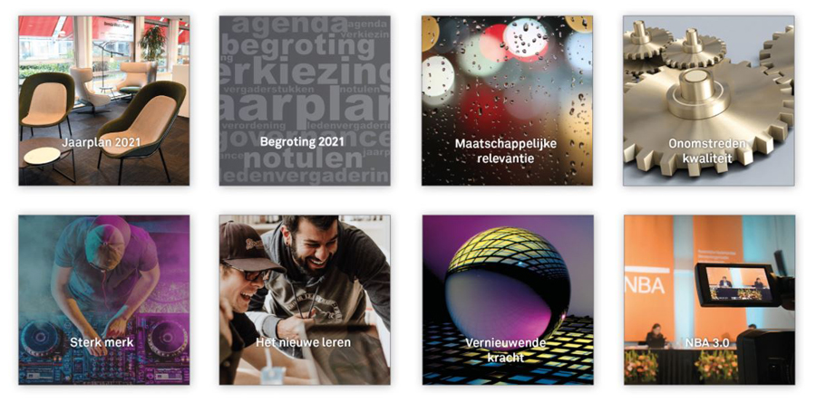 Het Jaarplan kent opnieuw een online vorm en bestaat uit acht 'tegels', waarop de belangrijkste plannen kort worden toegelicht. Het plan staat geagendeerd voor de ALV van 14 december. In die vergadering moet ook de NBA-Begroting 2021 worden goedgekeurd.