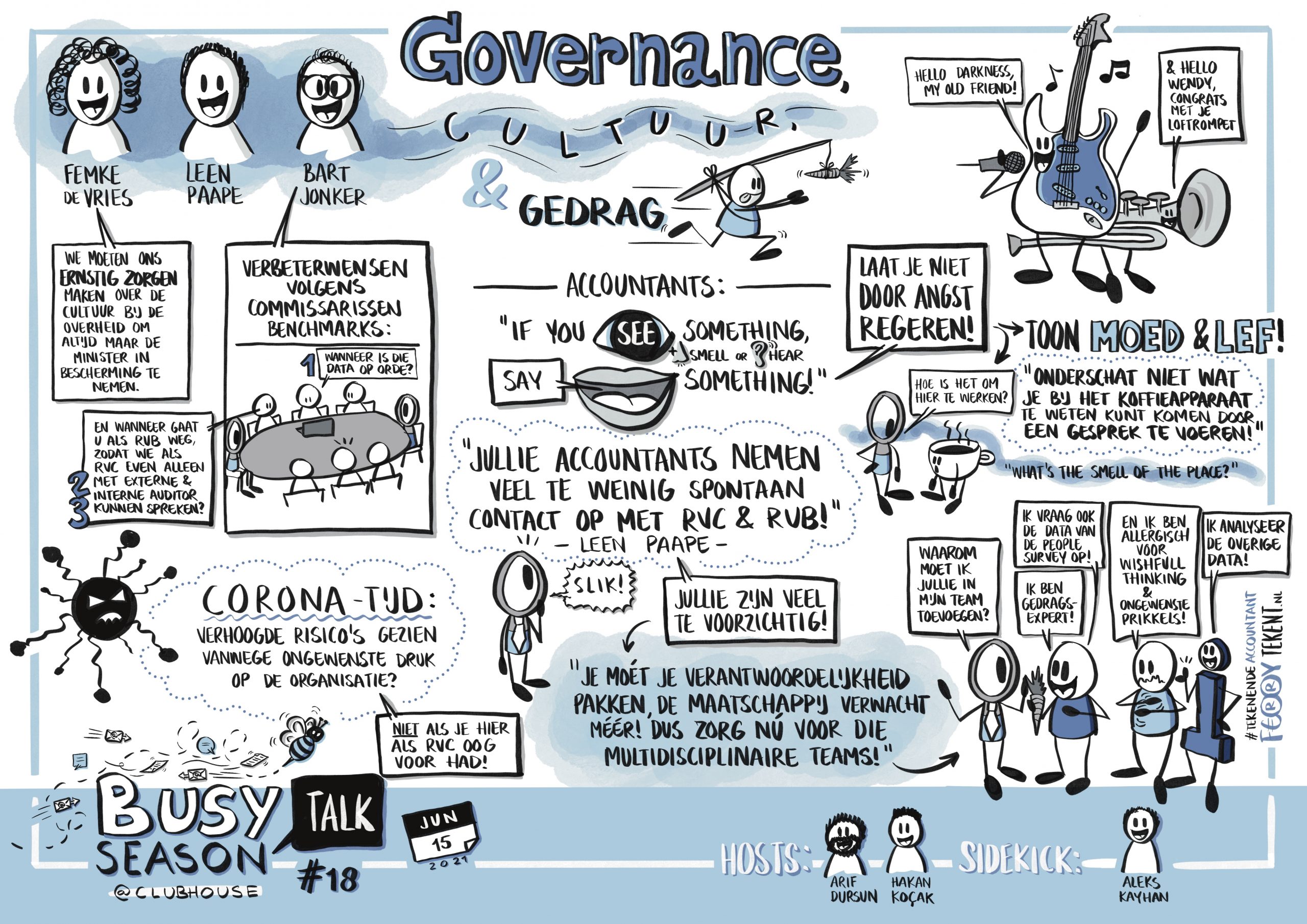 Dat stelde Femke de Vries (managing partner &samhoud consultancy en hoogleraar toezicht aan de Rijksuniversiteit Groningen) tijdens de achttiende editie van de Busy Season Talks op Clubhouse. Samen met Leen Paape (hoogleraar corporate governance aan Nyenrode) en Bart Jonker (bestuurslid Grant Thornton) sprak zij over governance, cultuur en gedrag, onder aanvoering van de vaste hosts Hakan Koçak en Arif Dursun.