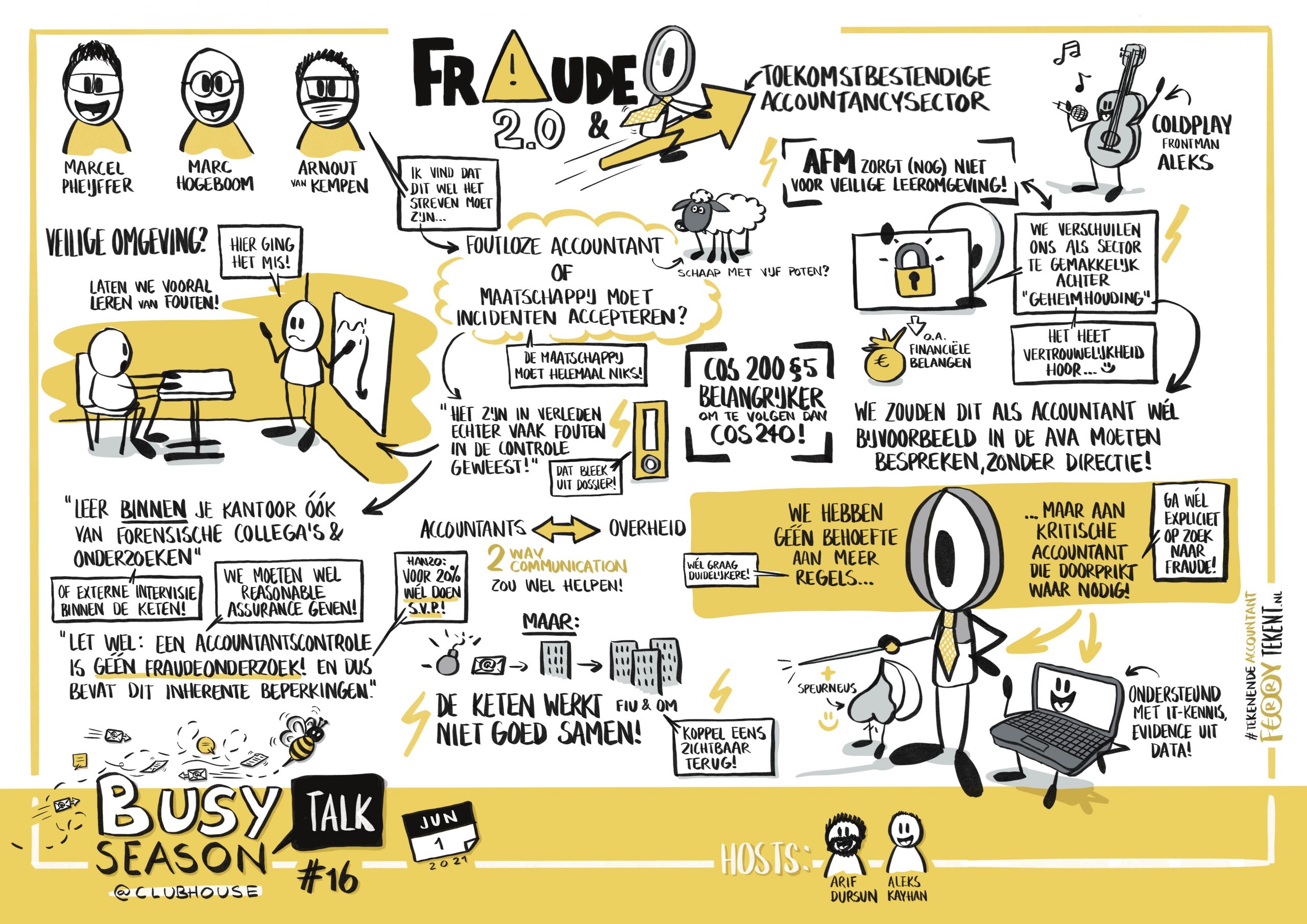 Hakan Koçak gaf aan de Busy Season Talks een plek te willen geven op het community platform van de NBA en riep de deelnemers op om mee te doen. Toen was 'tekenend accountant' Ferry Timp alweer klaar met zijn visuele weergave van het gesprek.
