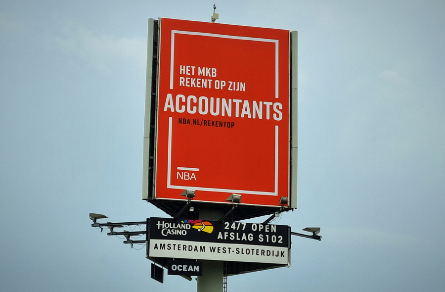 Voor automobilisten die vanuit Zaanstad de Coentunnel nemen richting Amsterdam, is op de rondweg A10 het billboard van de NBA niet te missen. 'Het mkb rekent op zijn accountants', zo staat er in enorme letters te lezen.