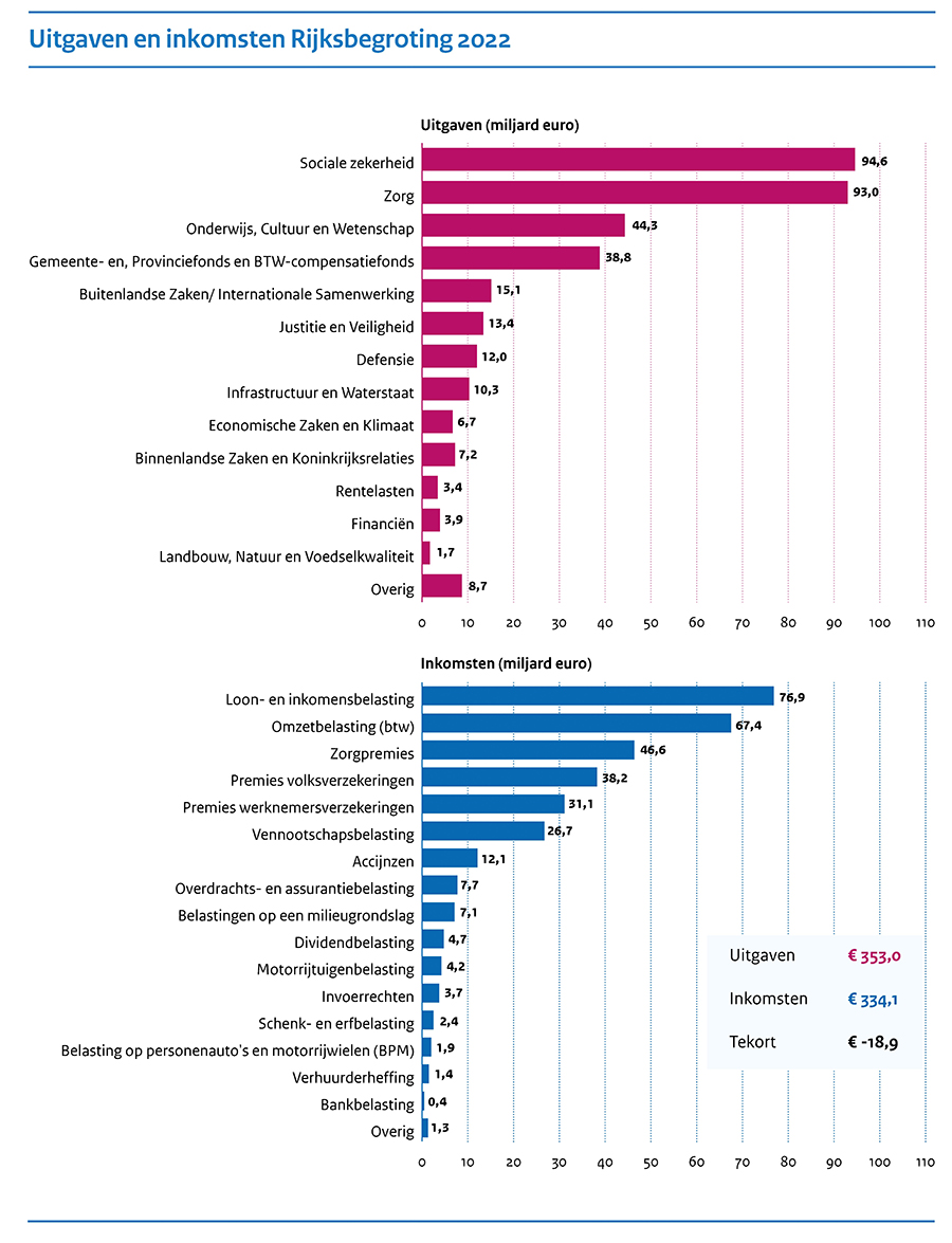 De staatsschuld wordt voor 2022 geraamd op 57,7 procent en blijft daarmee onder de Europese grenswaarde van 60 procent van het bbp. Het overheidstekort neemt ook af. Waar het overheidssaldo dit jaar nog -6 procent zal bedragen, is het de verwachting dat dit -2,4 procent zal zijn in 2022.
