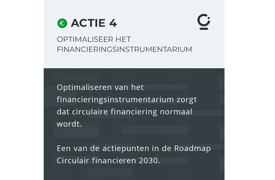 Dit zorgt ervoor om snel tot een kantelpunt te komen, waarna circulaire financiering de norm wordt. Met meer risicodragend kapitaal voor circulaire bedrijven in een vroege fase en het ontwikkelen van passende financiering, kunnen circulaire bedrijven groeien naar de benodigde schaal om te voldoen aan investeringscriteria voor financiers in een latere fase, zoals banken en institutionele beleggers. Blended finance, overheidsfinanciering en financiële innovatie kunnen hierin een belangrijke rol spelen.