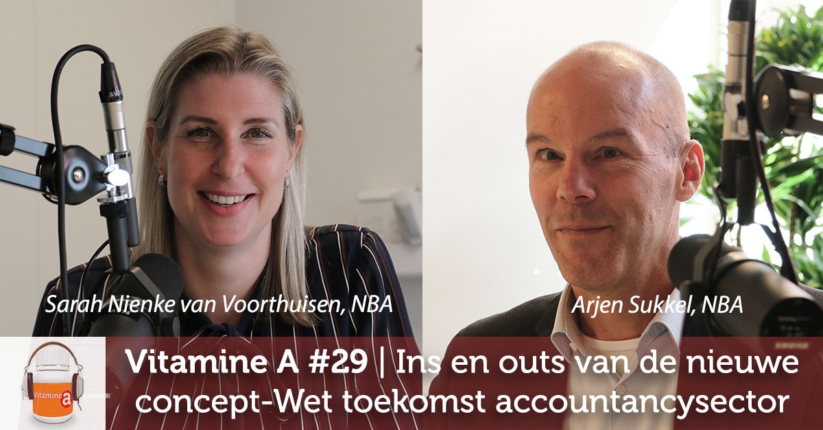 In het gesprek met host Sven Budding gaan NBA-collega’s Sarah Nienke van Voorthuisen (manager public affairs) en Arjen Sukkel (coördinator juridische zaken) nader in op de inhoud van de concept-wet en wat deze in de praktijk betekent voor de accountant. Ook wordt een inkijkje gegeven in de totstandkoming van de nieuwe concept-wet en de rol die de beroepsorganisatie daarin speelt.