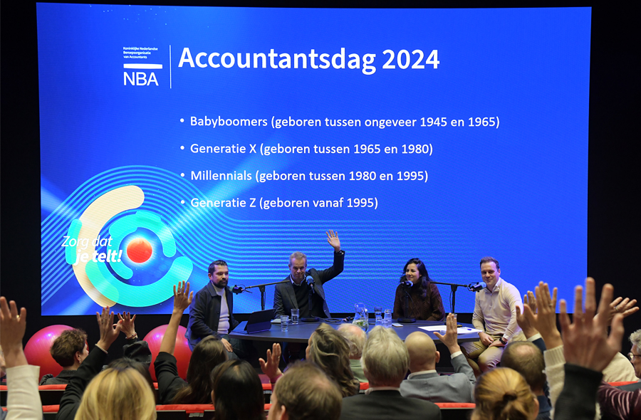De Accountantsdag 2024, gehouden op 20 november jl. in het AFAS Theater in Leusden, telde meer dan achthonderd deelnemers, driehonderd online kijkers en veertig sprekers. Via de speciale Accountantsdag-pagina op nba.nl is de livestream van de dag terug te kijken, evenals een aftermovie en de foto's van de dag.