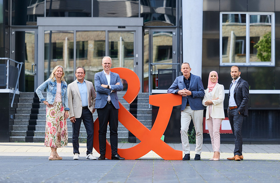 V.l.n.r. Anne-Barbara Lemmens (Head of People & Culture de Jong & Laan), Gijs Veenenbos (Managing partner Crowe Peak), Jurgen van Breukelen (CEO de Jong & Laan), Hans Missaar (Partner Tax & Legal Crowe Peak), Sahila Azarkan (Partner HR Crowe Peak) en Marco Herder (CFO de Jong & Laan).