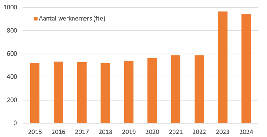 Aantal werknemers de Jong & Laan 2015-2024 (in fte)