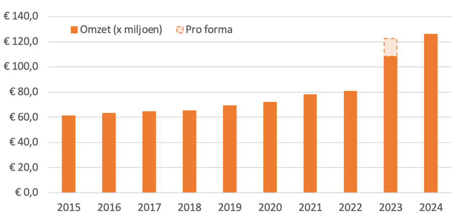 Omzet de Jong & Laan 2015-2024 (in miljoenen €)