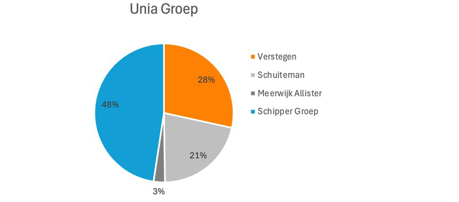 Unia Groep zet, na de recente overname van Schipper Groep, ruim € 100 miljoen om. Dat blijkt uit een analyse van de jaarcijfers van de kantoren die zich hebben aangesloten bij de door private equity-fonds Capital A opgetuigde coöperatie.