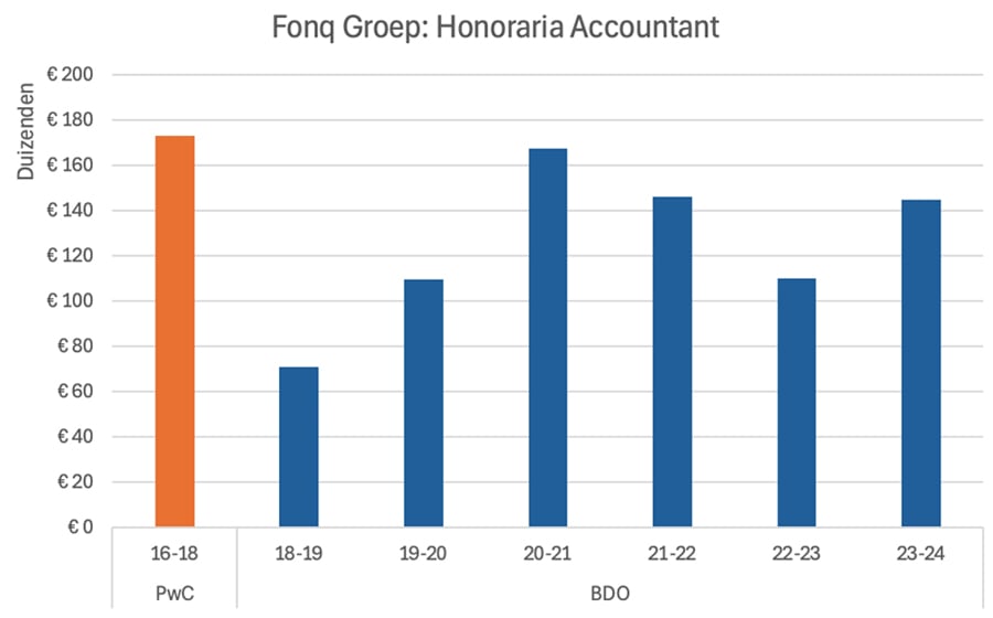 Accountantshonoraria Fonq Groep BV, 2016-2024. Boekjaren eindigend op 31 maart. Boekjaar 2016-2018 betreft een verlengd boekjaar.