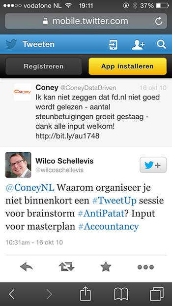 In 2010 twitterde ik nog onder de naam ConeyNL. Die zaterdagochtend liep mijn mailbox vol met steunbetuigingen van collega's die zich ernstig zorgen maakten over ons vak. Wilco Schellevis stuurde onderstaande tweet. En zo geschiedde: zes dagen later was de eerste Tweetup in de Van Nellefabriek in Rotterdam.