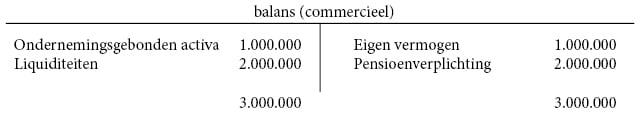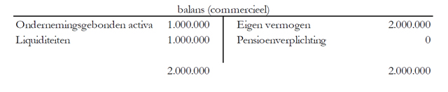 De dga kiest voor afkoop van zijn PEB. De fiscale waarde van het pensioenverplichting is 1.000.000 euro. De dga kiest voor afkoop van zijn PEB. Doordat de afkoop gebaseerd wordt op de fiscale waarde van de pensioenverplichting, stijgt het eigen vermogen met 1.000.000 euro. De balans ziet er dan als volgt uit: