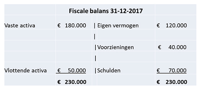 De vaste activa bestaan uit een pand, vervoermiddelen en inventaris, de vlottende activa uit debiteurenvorderingen en liquide middelen. Het eigen vermogen betreft een aandelenkapitaal van € 18.000 en overige reserves van € 102.000. De voorziening is een niet ingegaan stamrecht en onder de schulden zijn enkele crediteuren, belastingschulden en wat overlopende passiva opgenomen. Een onderneming die er solvabel en liquide uitziet.