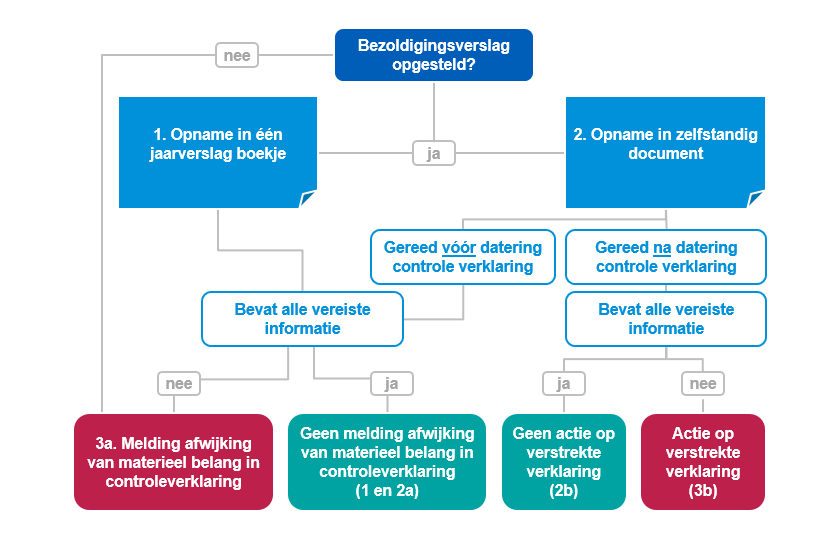 De uitkomsten van de hiervoor uiteengezette procedures op het bezoldigingsverslag en het effect daarvan op de controleverklaring kunnen schematisch als volgt worden weergegeven: