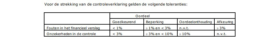 Bij een controle van financiële overzichten waarbij naast de opsteller en de accountant sprake is van slechts één gebruiker (besloten kring), kan deze gebruiker maatstaven voorschrijven die de strekking van het oordeel bepalen. Ter illustratie verwijs ik naar onderstaande tabel, afkomstig uit het Accountantsprotocol behorend bij de Kaderregeling subsidies OCW, SZW en VWS.