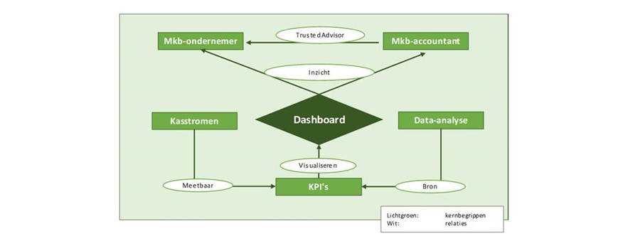 Uit het onderzoek komt naar voren dat het gebruik van een dashboard een belangrijk hulpmiddel kan zijn voor de mkb-ondernemer, maar dat niet alleen. Het dashboard kan ook de mkb-accountant een actueel inzicht geven in de kasstromen van de onderneming (figuur 4). De mkb-accountant heeft met het dashboard een goede mogelijkheid om zijn verdienmodel uit te breiden en de klant beter te leren kennen. De rol van de accountant gaat daarmee essentieel veranderen.