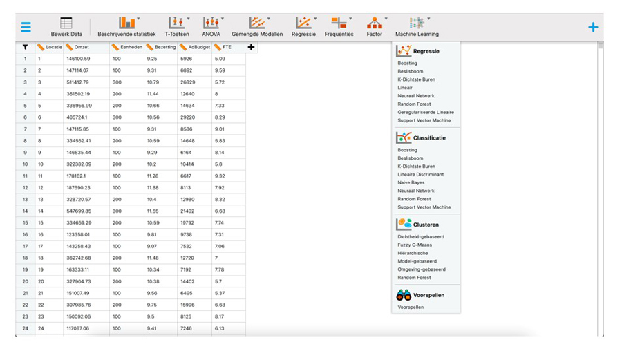 In deze column demonstreren we hoe je met het gratis open-source statistiekprogramma JASP (JASP Team, 2024) zonder enige programmeerkennis een machine learning algoritme voor clusteren kunt toepassen in de context van een audit. We illustreren dit aan de hand van een voorbeeld, waarbij je als auditor bedrijfslocaties van een opslagruimteverhuurder wilt clusteren op basis van een aantal kenmerken.
