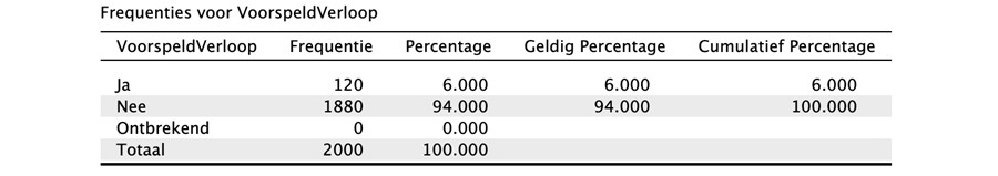 Allereerst navigeer je naar de optie 'Voorspellen' in het machine learning-menu en laadt daar het opgeslagen model in. De kenmerken van de klanten in het huidige klantenbestand sleep je dan naar het daarvoor bestemde veld. Vervolgens klik je onder in de interface op 'Voorspellingen toevoegen aan gegevens'. Ten slotte kun je naar 'Beschrijvende statistiek' gaan om frequentietabellen van de voorspellingen te genereren.
